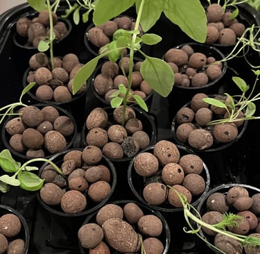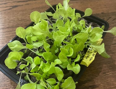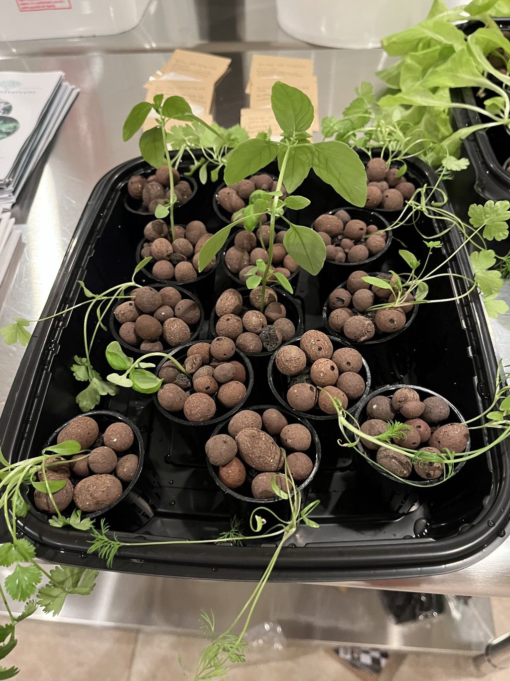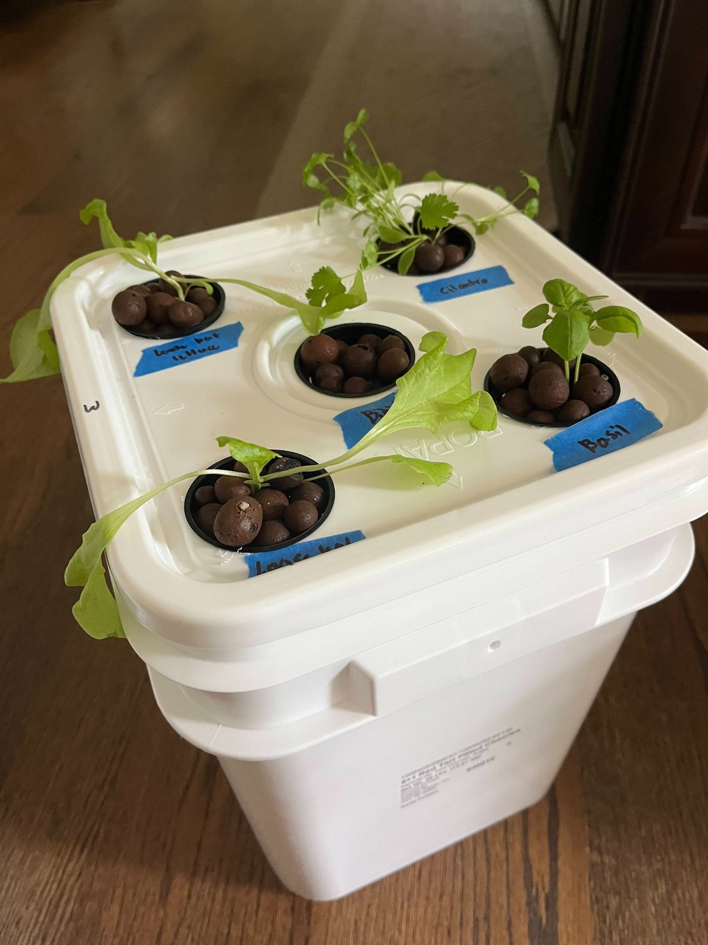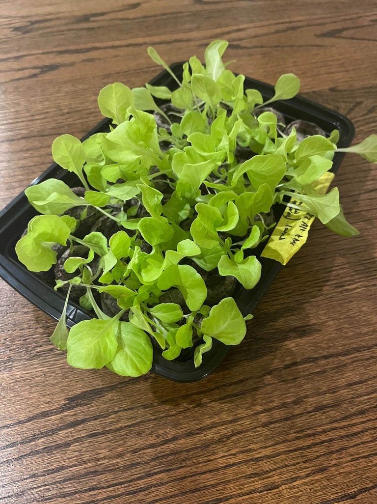 Plant seedlings – lettuce, basil, cilantro, dill, and kale.