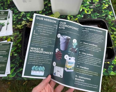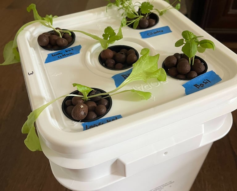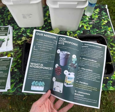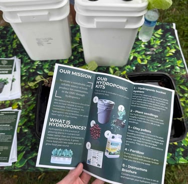 HydroHarvest’s grow buckets are simple, low-maintenance hydroponic systems designed to help families grow fresh produce at home. Each bucket is made from recycled, food-grade containers sourced from local restaurants and bakeries, helping reduce plastic waste while supporting sustainability.